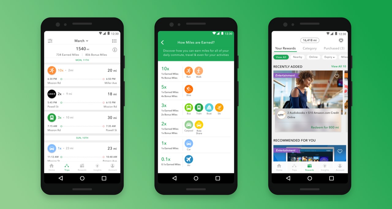 Available on iOS and Android, Miles allows anyone with a smartphone to earn miles as they travel. Designed to work seamlessly in the background, Miles automatically logs each trip from point A to B and the mode of transportation, while keeping data completely private.