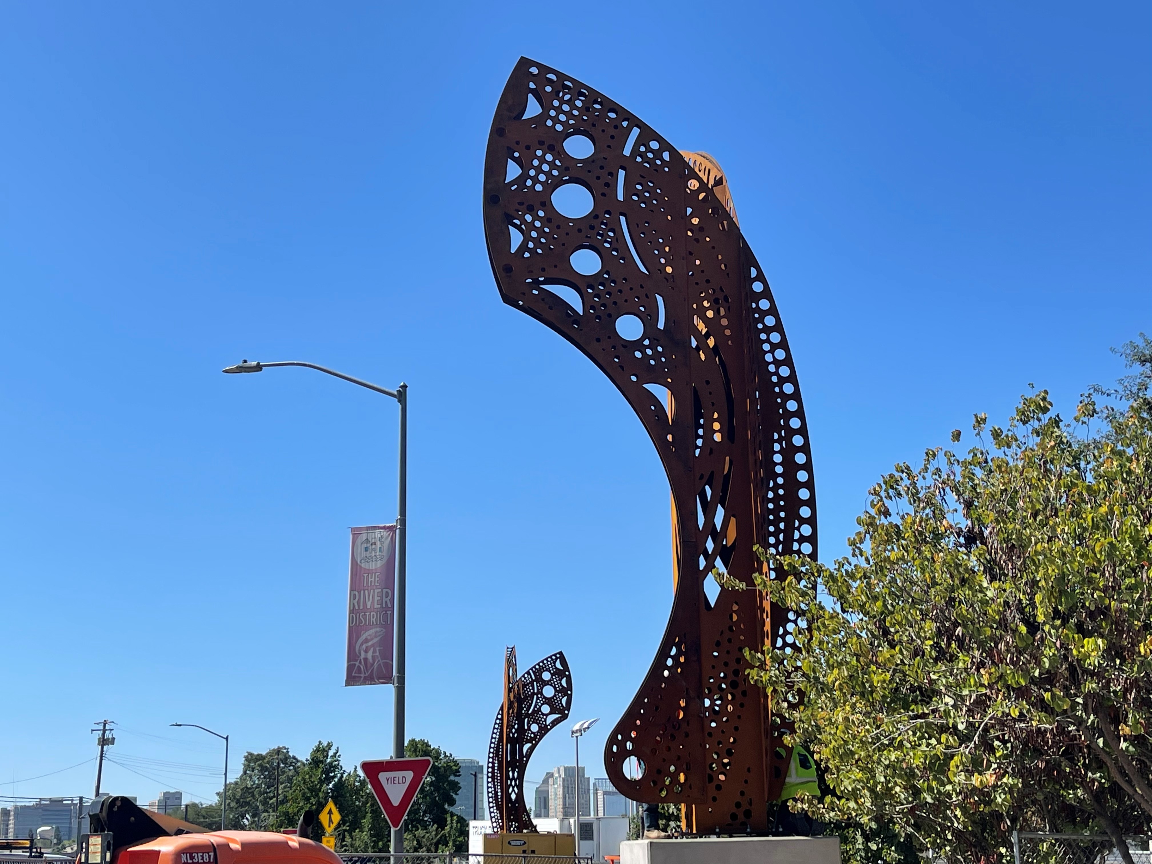 Two 40-foot new public art sculptures have been installed in the River District.
