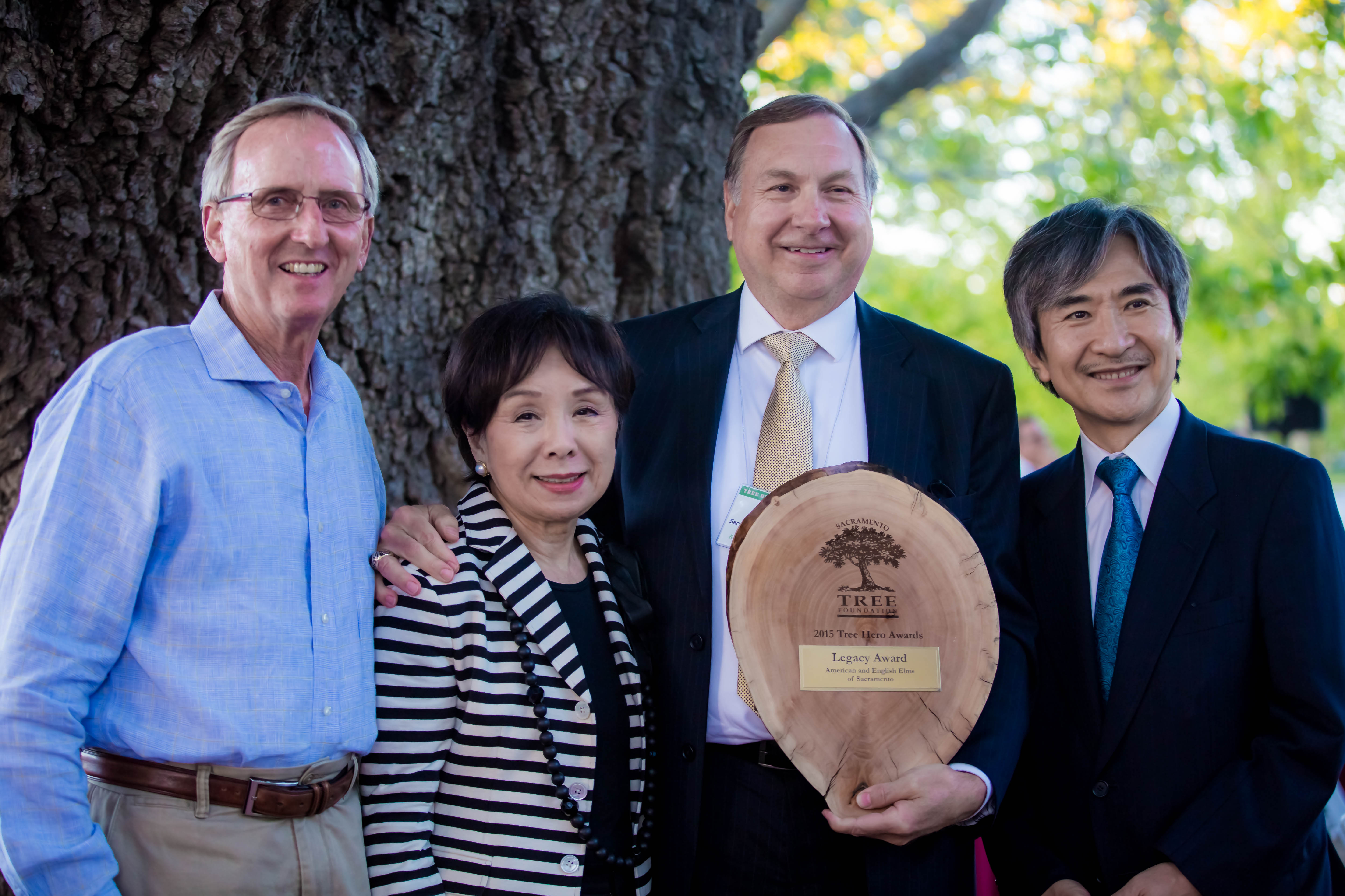 City Manager John Shirey (middle) is pictured with the Tree Hero award along with Sacramento Tree Foundation Executive Director Ray Tretheway, U.S. Rep. Doris Matsui,…